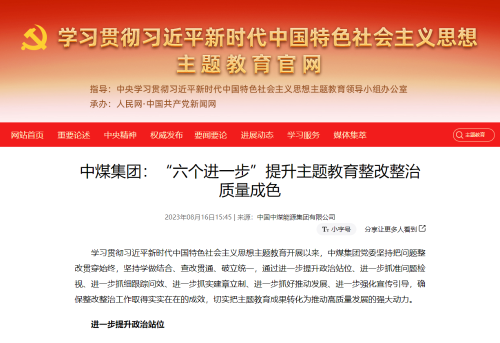 - 【中央主題教育官網(wǎng)】中煤集團(tuán):“六個(gè)進(jìn)一步”提升主題教育整改...